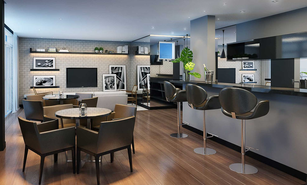 Já nas áreas comuns, destacaria o espaço gourmet com uma grande foto estampada da parede trazendo um ar de modernidade a um ambiente discreto e atemporal. Para o lounge bar, o clima pretendido foi mais sério, chique e elegante